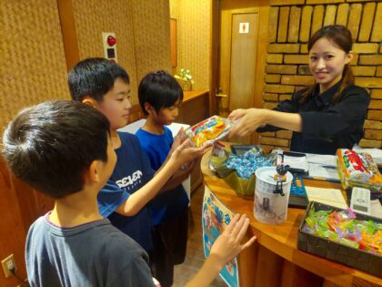 焼肉店Sensyu亭様では、お子様限定にお菓子詰め合わせをプレゼントし...
