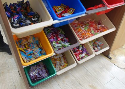 お菓子のボックスの中からみんな真剣な顔で選ぶ姿はとてもかわいらしく